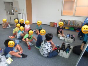 お腹が落ち着いたら準備運動を行いレクレーションをして遊びました💪