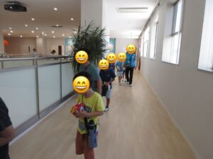 セイカの職員さんの話をしっかりと聞き、列を守って進んでいました。