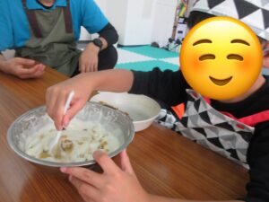 みんなで、役割分担をして作った いもむしぱん🍠と