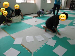 避難訓練の後は昼食を摂り、訓練にまつわるレクレーションを行いました。